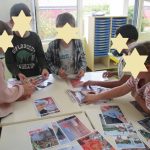 Nous devions observer des photos et retrouver le mauvais geste (bouteille en plastique, papier aluminium, gaspillage alimentaire, etc). Puis nous devions associer ces photos avec des photos « Bons gestes ».