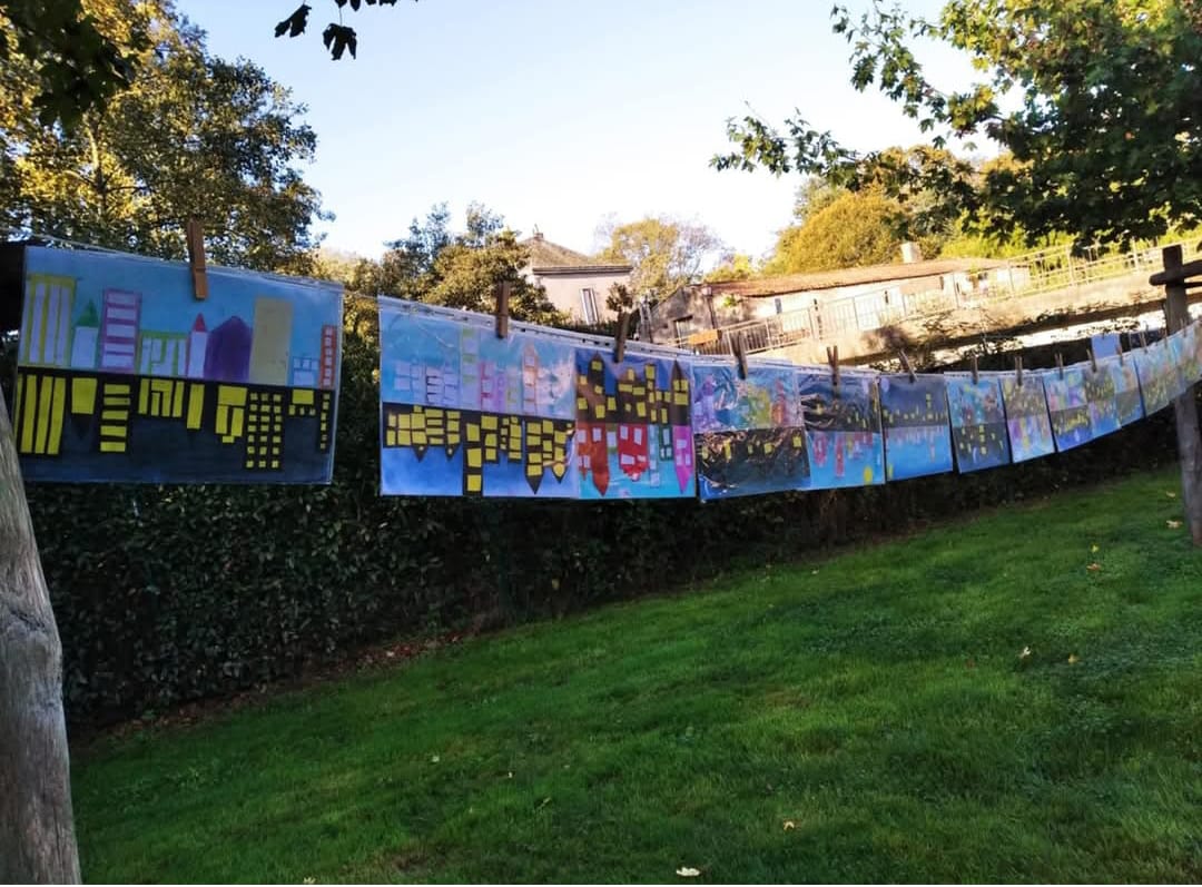 Le jeudi 16 octobre a eu lieu la Grande Lessive. Cette installation artistique éphémère nous a permis de travailler sur le thème « Nuit et jour, réfléchir les lumières ! ».