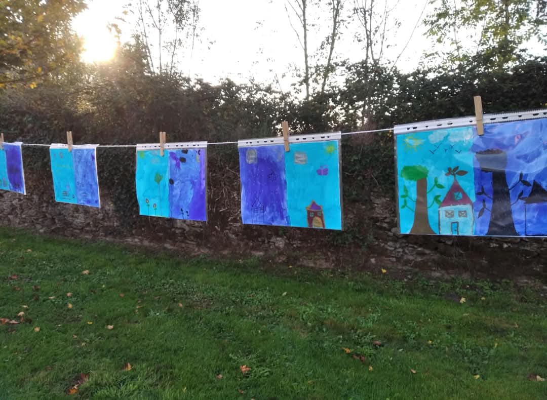 Les œuvres des élèves de l’école ont été accrochées Place de la Vie et ont pu être admirées par les habitants d’Apremont.